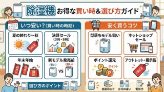 除湿機はいつ安いのか知りたい方へ。安くなりやすい時期、高くなりやすい時期、型落ちモデルやセールを活用してお得に買うコツをわかりやすく解説します。